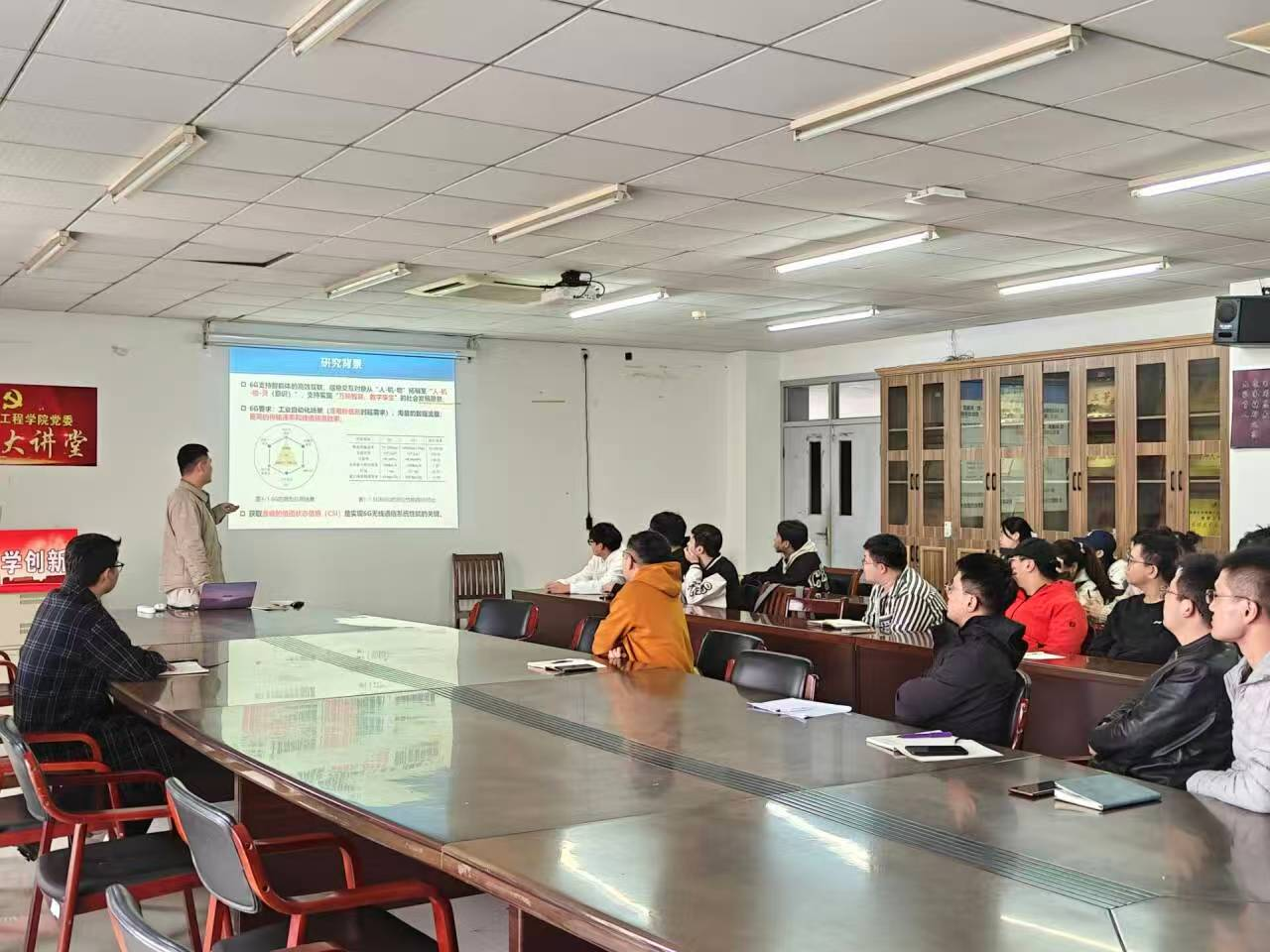 报告中,李伟东博士系统阐述了高速移动场景下信道预测的基本原理,总结了现有研究应用的相关场景,并针对传统研究下无线通信系统高速传输过程中的痛点问题,提出了高速场景下信道预测的理论与方法,并对现有研究工作进行了详细地介绍和分享。报告结束后,李伟东博士还与现场师生探讨了学术研究创新点方面的相关内容,现场学术氛围浓厚。