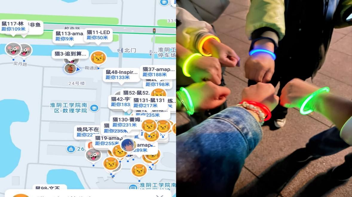 活动开始前,所有参与者加入了高德地图游戏组,并随机分配了猫和老鼠的角色。扮演“老鼠”的同学统一领取并佩戴上荧光手环,在夜色的映衬下化作流动的光点,格外醒目;他们的核心任务是在限定时间内,避开“猫”的追捕,前往校园内精心选定的三个打卡点完成拍照认证,集齐全部打卡记录即为任务圆满完成。而“猫”阵营的同学们则以“捕猎者”的身份登场,无需佩戴手环,凭借对校园地形的熟悉与团队协作,全力搜寻并抓捕“老鼠”,抓获数量将作为最终评优的核心依据。