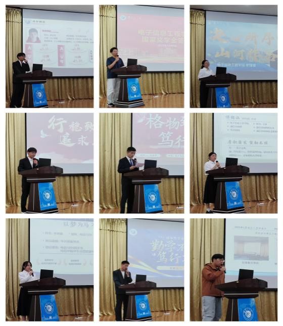 评审环节在庄重有序的氛围中展开。首先,3 名研究生国奖推荐人依次上台展示风采,他们结合自身科研经历,分享在通信技术研发、智能系统设计等领域的探索成果,从学术论文发表到科研项目攻坚,展现出电信学科研究生扎实的科研素养与创新思维;随后,9 名本科生候选人以PPT 汇报为载体,从学业成绩、科研实践、学科竞赛、志愿服务、学生工作等维度,全方位呈现个人成长轨迹。候选人的精彩展示不仅赢得现场阵阵掌声,更让在场大一新生深刻感受到“优秀从来不是偶然,而是长期坚守与持续奋斗的结果”。