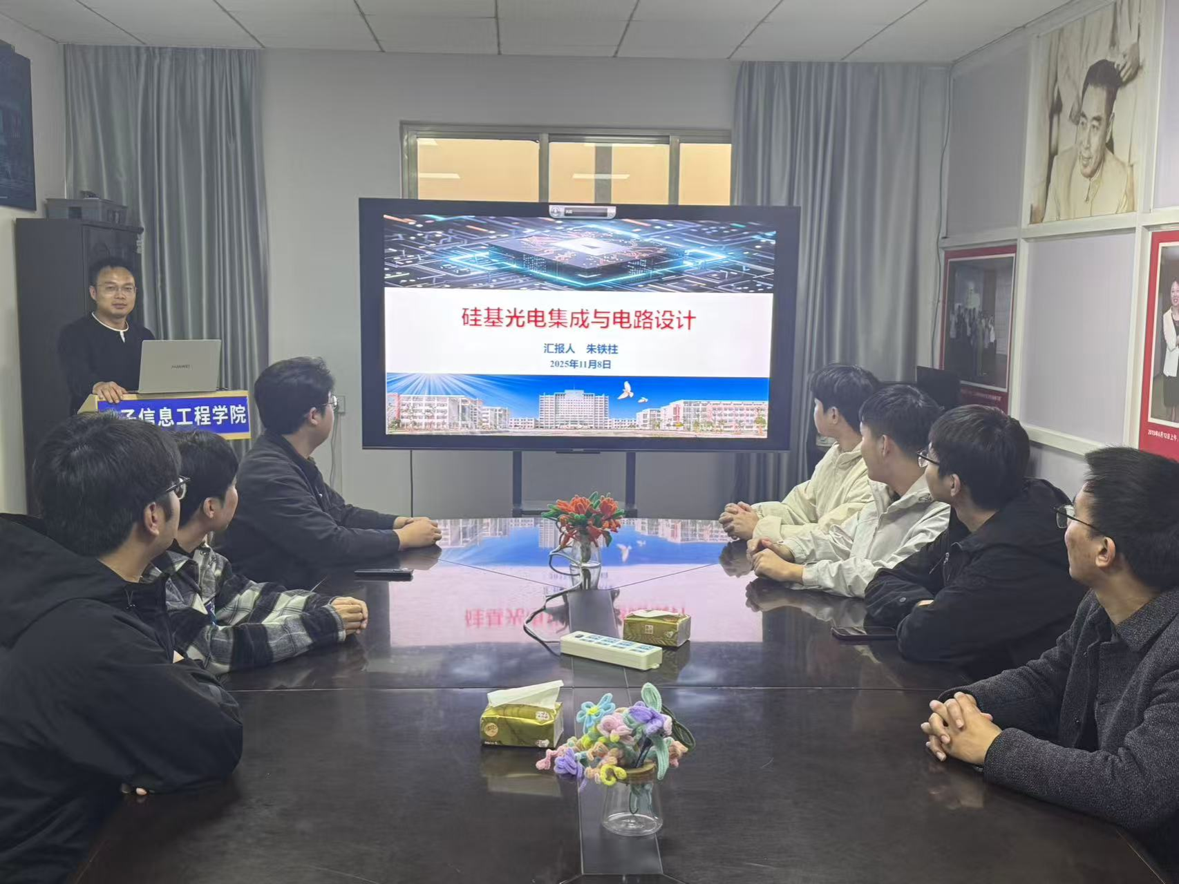 报告中,朱铁柱博士系统阐述了硅基光电集成与电路设计的基本原理,总结了现有研究应用的相关场景,并针对传统设计噪声抑制能力弱、存在信号干扰以及难满足高精度应用需求的问题,提出了基于低噪声设计的方法与实现路径,并对现有研究工作进行了详细地介绍和分享。报告结束后,朱铁柱博士还与现场师生探讨低噪声光电集成电路的发展方向,现场学术氛围浓厚。