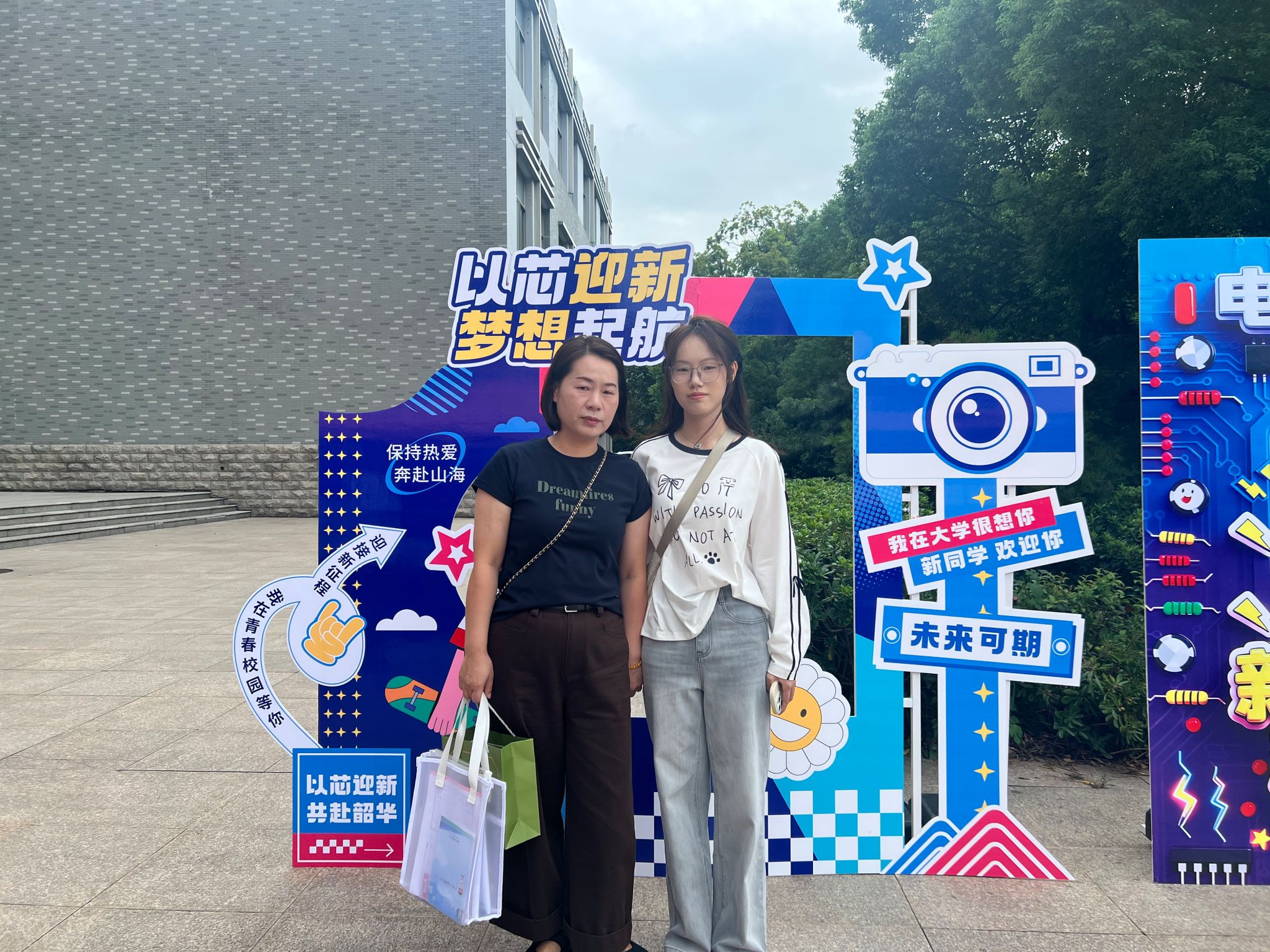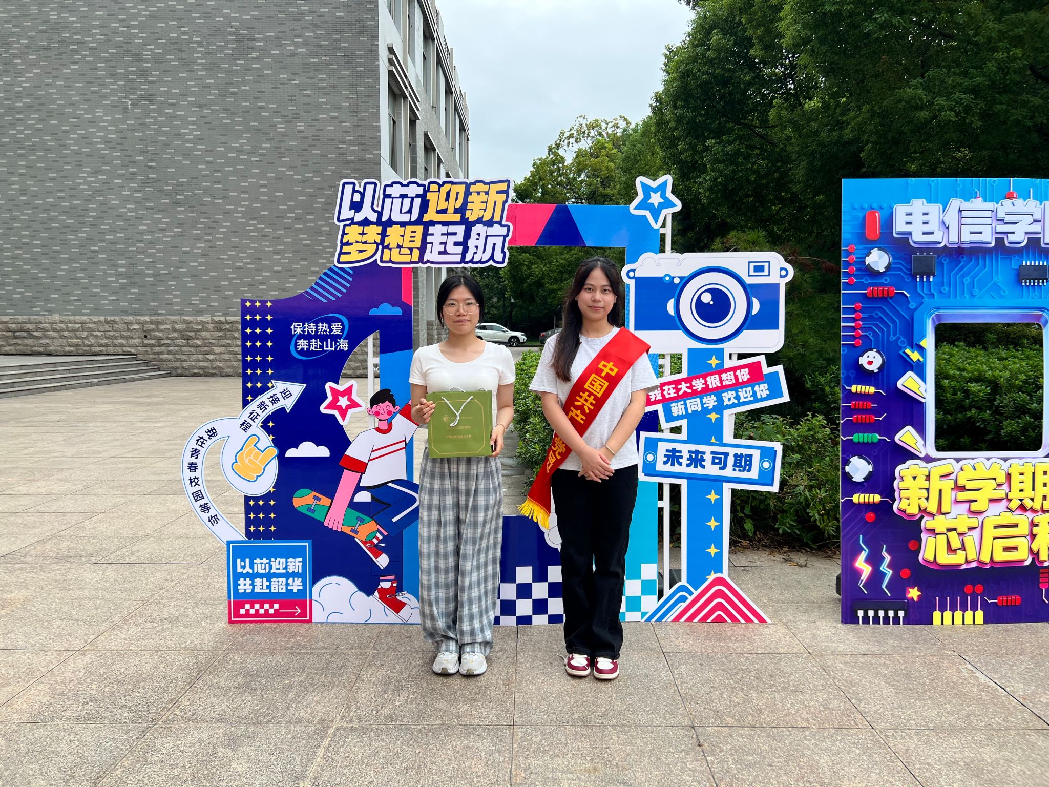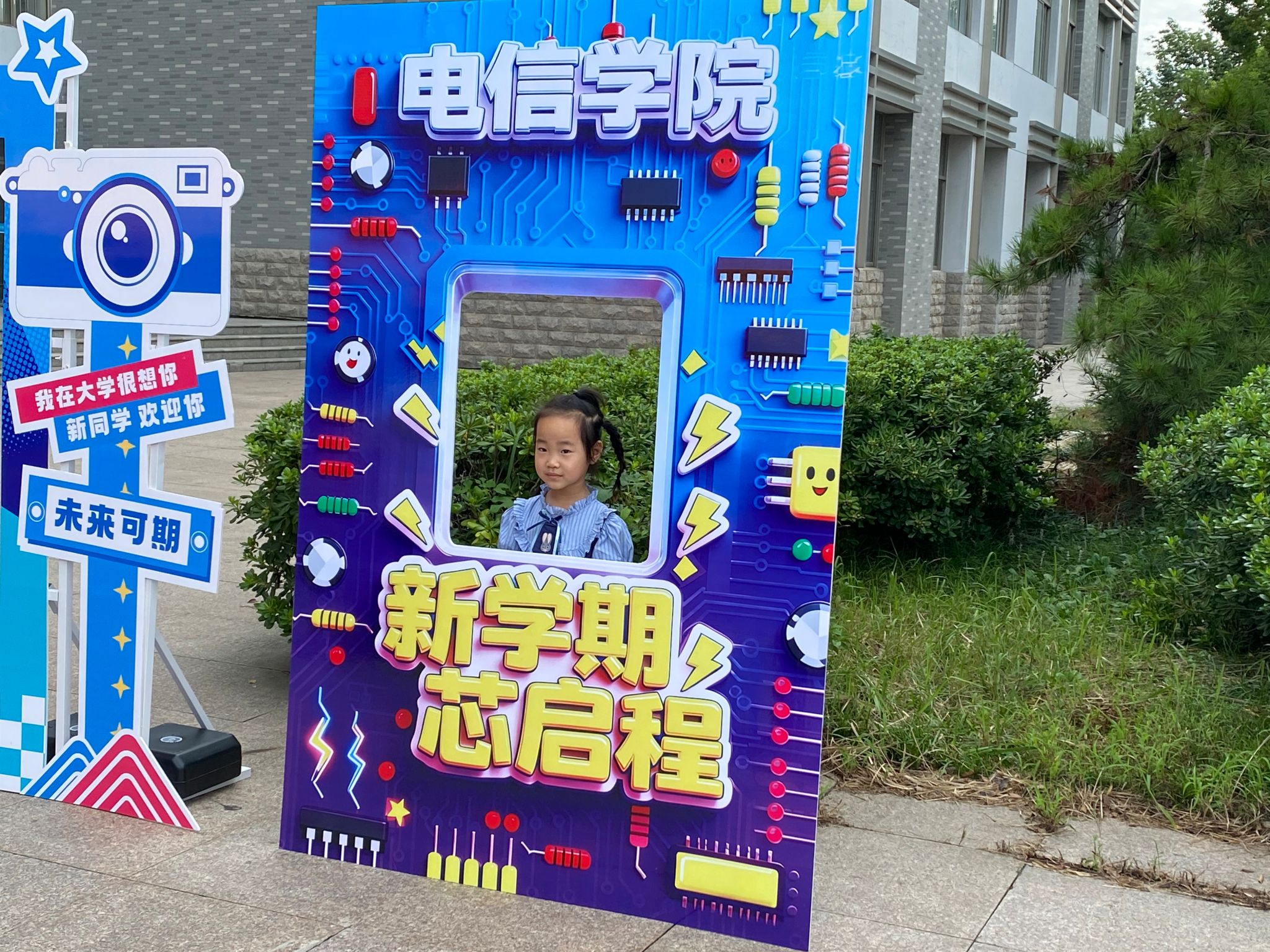 与科技感十足的展示相呼应的是电信学院无微不至的人文关怀。学院特别设置了“青春开学季,你好新同学”主题拍照打卡点,精心设计的背景板和趣味相框吸引了众多新生及家长驻足留念,记录下大学第一天的珍贵瞬间。