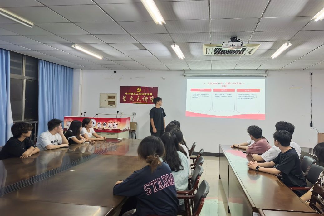 为深入推进铸牢中华民族共同体意识教育走深走实,充分发挥学生在思想政治教育中的主体作用,近日,电信学院各班级以班团活动为依托,开展 “溯多元一体脉络,守民族团结初心” 专题学习活动。