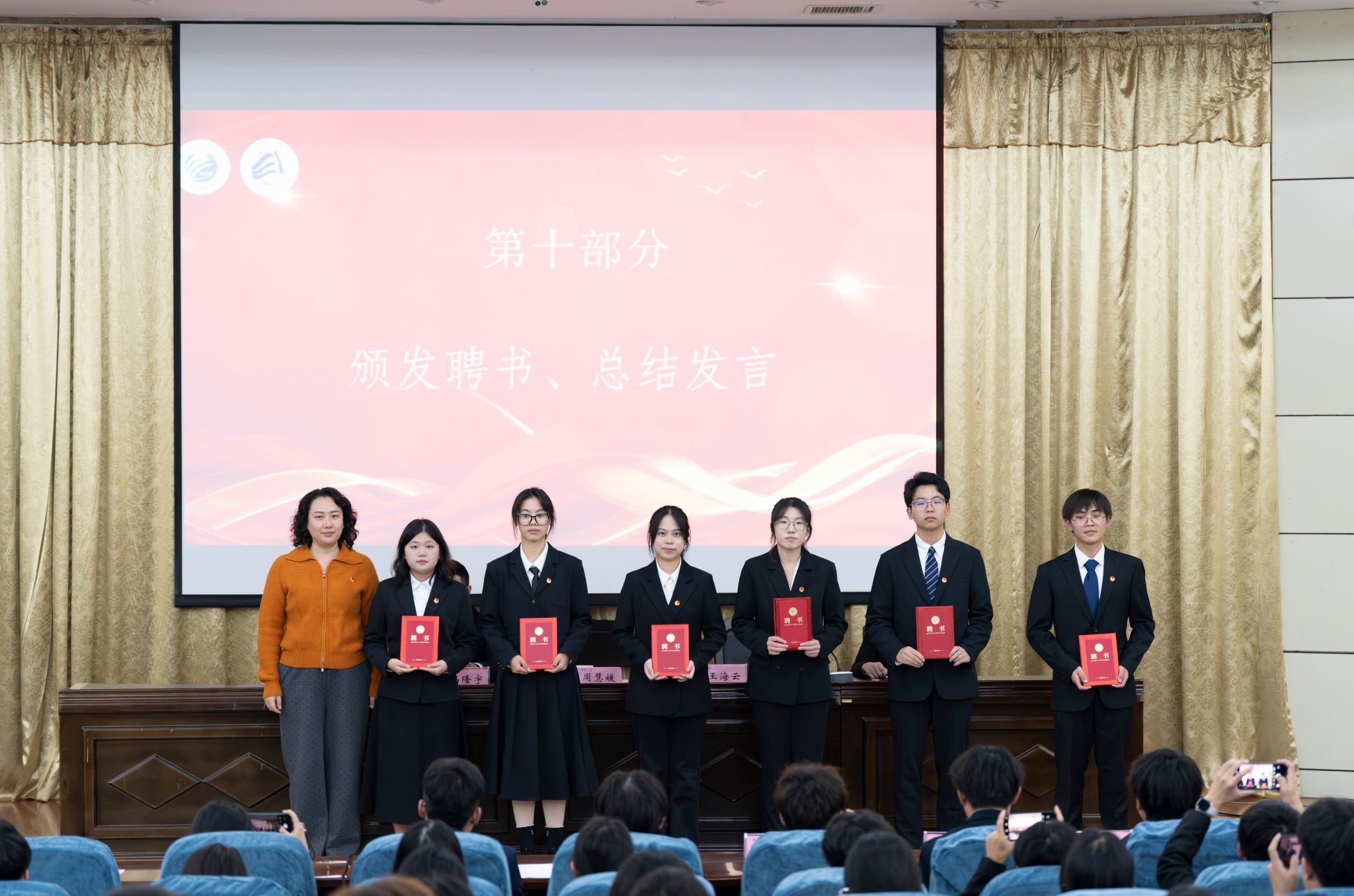 王海云副书记为新任主席团成员逐一颁发了聘任证书并作总结发言。她首先对大会的圆满召开表示祝贺,对第十届学生会为学院学生工作所作出的贡献给予充分肯定。王海云结合学院发展目标与学生成长需求,对学生代表与新一届学生会提出要求:要坚定理想信念,做青春航向的“领航者”;强化服务意识,做同学身边的“贴心人”;提升工作能力,做学生成长的“同行者”。她勉励新一届学生会不忘初心、携手前行,积极探索契合学院学生特点的工作路径与方法,广泛团结同学,共同绽放绚烂的青春风采。